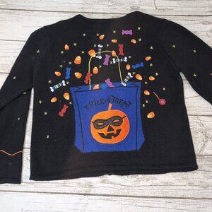 Segue Boo! Halloween Cardigan Sweater Black Ghost Pumpkin Candy – Women’s M