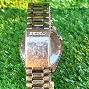 This authentic Seiko is a preowned piece in well-maintained condition and has been professionally serviced by a certified watchmaker to ensure accuracy and longevity. Minor signs of age consistent with vintage status, but overall very clean and fully functional. Its surface carries minor scratches, subtle marks of a life well-lived that only enhance its unique, vintage charm.