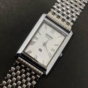 Fully functional and in mint condition, this slim tank watch is crafted by Seiko and is a unique addition to any collection. The Two-Piece Bracelet adds a touch of sophistication and elegance to the piece, while the customized design makes it truly one-of-a-kind.