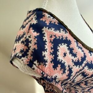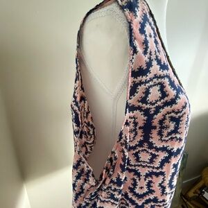 Sejour Blue/Red/White Design Beaded Neckline Sleeveless Tank Top/Blouse