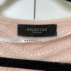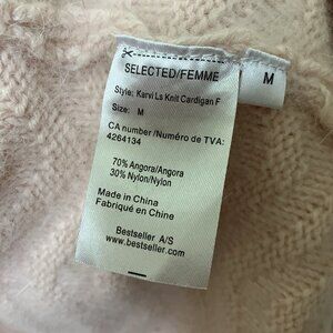 Selected Femme Angora Cardigan Womens M Pink Wavy Ribbed Knit Open Front