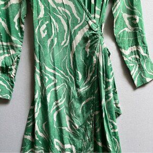 Selected Femme Long-Sleeve Marble-Print Midi Wrap Dress Sz 38/ 8