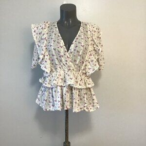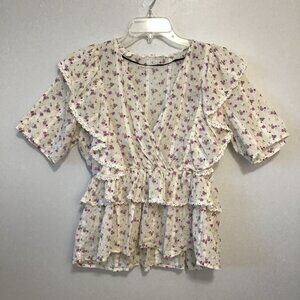 Selected Femme Susy Ruffled Floral Blouse Top Size 36
