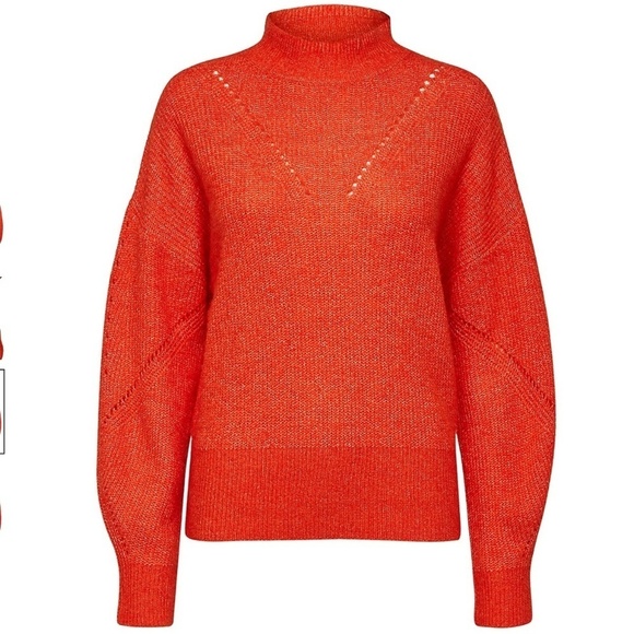 Selected Femme knit sweater Funnel Mock High neck Bird eye Wool blend Orange M
