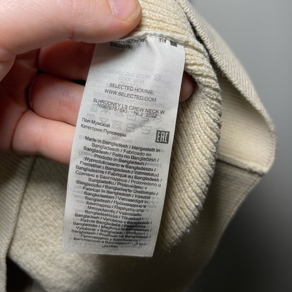 Selected Homme Ribbed Cream Organic Cotton Crewneck Pullover in size L