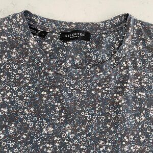 Selected Homme SLHALEX Small Flowers SS Crew Nk T Shirt Blue Wht Brown Sz M NWOT