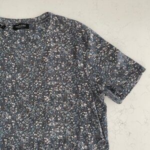 Features: pull on, short sleeve, crew neck, subtle floral print, cotton, casual