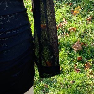 2 layers - top layer is same see-through fabric as the sleeves - see photos 4-6