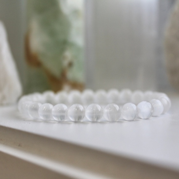 Selenite Gemstone Chakra Balancing Stretchy Energy Cleansing Bracelet