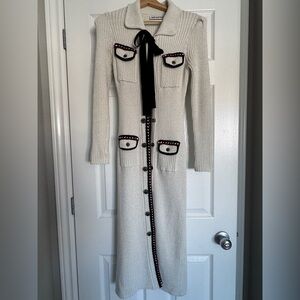 CREAM LUREX LONGLINE KNIT CARDIGAN
