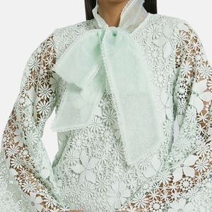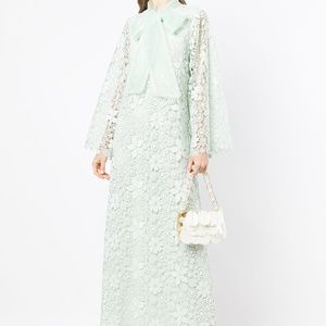 Self Portrait Guipure Mint Floral Lace Maxi Dress