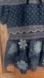 Chic lace blouse with floral patterns. Features navy and gray tones. Ideal for stylish outings.