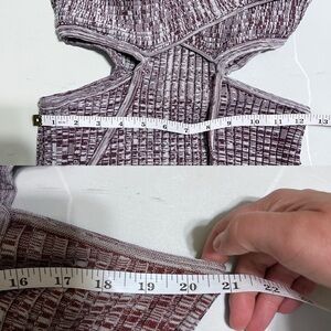 @kjmacdonald16 Photos added with measurements of L & XL. See size label photos, followed by measurements for that size. Note this dress is VERY stretchy, bodycon style so these measurements will give at least 3-4 more inches with stretch.