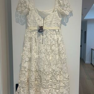 Self-Portrait White Guipure Lace Midi Dress NWT Size 10