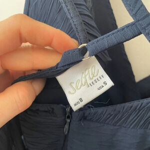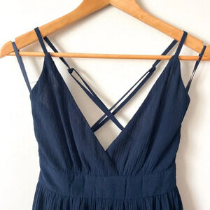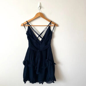 Selfie Leslie Greta Chiffon Layered Mini Dress Navy Blue Size Small