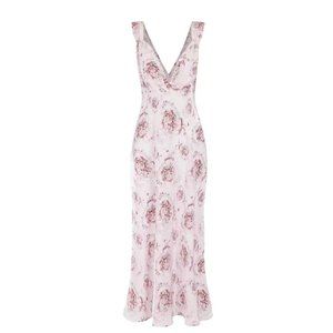 Tags: selkie rixo dolls kill anthropologie bhldn free people princesscore lovecore valentines ribbon flowy 90s print long floor-length column sheath y2k 90s grecian dress ruching mauve dusty rose pink