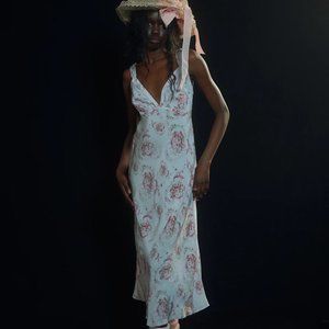 Selkie Secret Lover Goddess Slip. Vintage silk crepe de chine sleeveless v-neck maxi slip dress in a valentine's heart bouquet print.