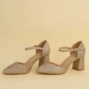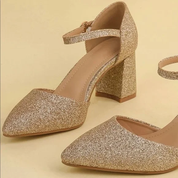Shoes are brand new never wore Size of US is 8 or 8.5 But for EUR is 39 Golden minimalist point toe ankle strap glitter pumps