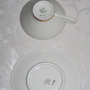 Known for their fine porcelain quality, the set is in very good condition, without any chips, cracks, or crazing. There is some light utensil marks on the sandwich/snack plate and saucer, visible only when held under direct light. Gold trim is still prominent.
