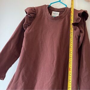 Sem Organic Cotton Ruffle Shoulder Dress 8Y Made in Canada Brown Long Sleeve