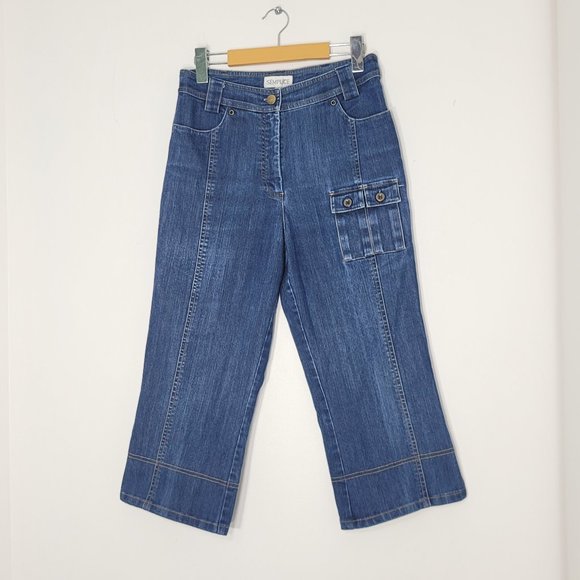 Semplice Blue High Rise Cropped Wide Leg Jeans Ankle Length Cut Pockets Size 8