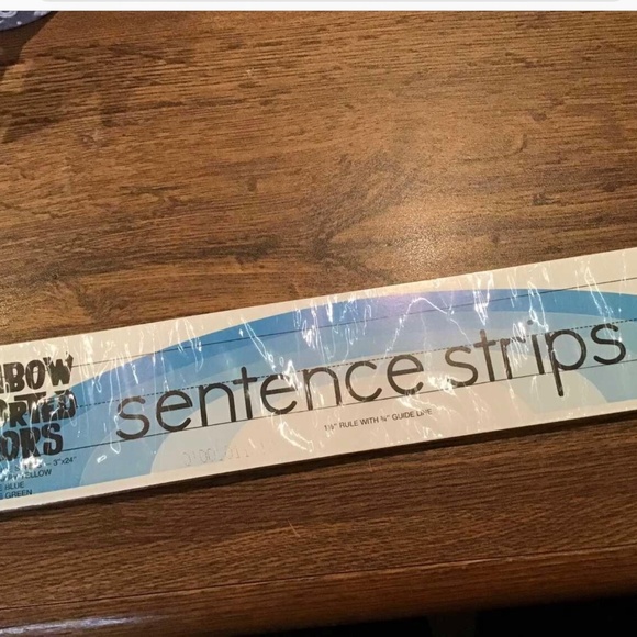 Rainbow sentence strips3”x 24” 5 different colours There were 109 strips 20 of each colour. I have used a few but the pack still has about 70. There are 5 strips of the yellow colour.