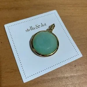 Hand-cut semi-precious ocean quartz set in shiny gold creates a classic piece for your everyday wardrobe. This beautifully detailed locket was hand-modelled in our NY design studio. It can be worn as a charm or a pendant with (or without) a photo inside. Full functioning locket. Shiny gold finish. 1" diameter. Due to the nature of semi-precious stones please expect some variation. Chain not included.