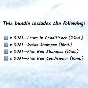 ~An OUAI sample bundle including their cult favorite multitasking Leave in Conditioner, a clarifying Detox Shampoo, and a Shampoo & Conditioner pair to strengthen and volumize fine hair~