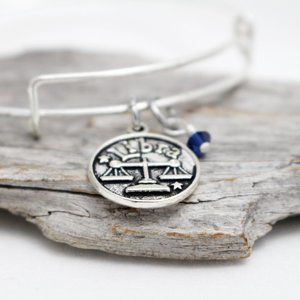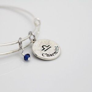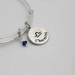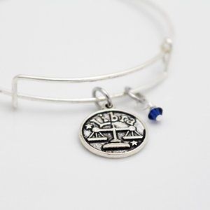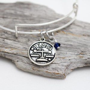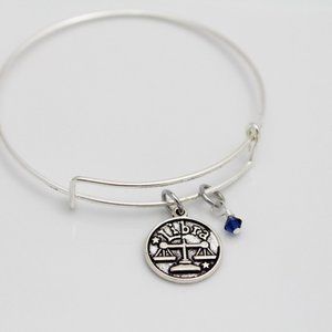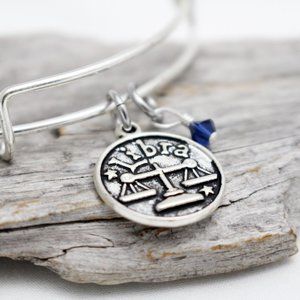 September Libra Adjustable Charm Bangle - Handmade Zodiac Bracelet