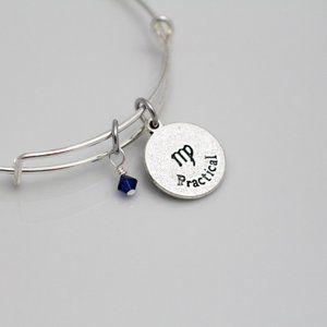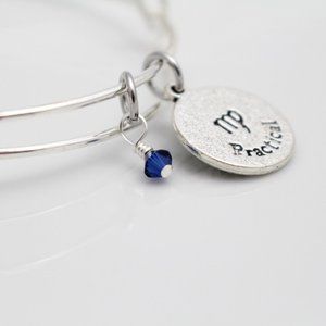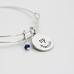 September Virgo Adjustable Charm Bangle - Handmade Zodiac Bracelet