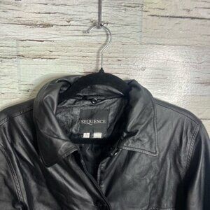 Sequence Leather Coat Size 8 Black Optional button down vintage quilted