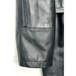 Sequence Womens Leather Jacket Lined Pockets Collar Full Zip Black Size 16
