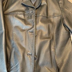 Beautiful heavy women's 100% leather jacket. Pre-owned but in great condition as pictures show there is not a break at all. Three buttons on the front and slightly loose but can be sewn on tightly.