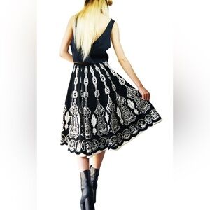 Indian inspired design Black and Cream graphic design with hand sewn silver sequins