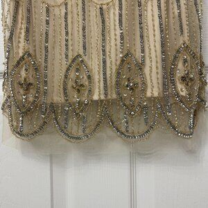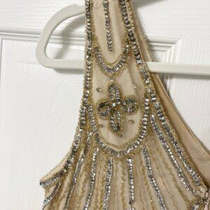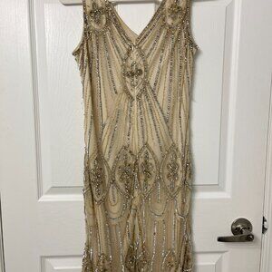 This gorgeous 1920s-inspired sequin dress makes a unique and stunning statement. The simple silhouette and back zip enclosure makes this dress so easy to wear. Purchased for my friend's "The Great Gatsby" inspired wedding at Casa Loma. Worn once!