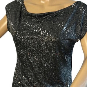 Sequin Dress by Allen Schwartz NWT black shimmer dress, back cut out, ribbons