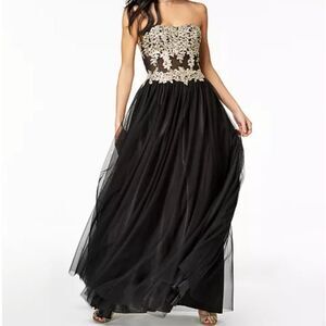 Sequin Hearts Embroidered Corset Strapless Gown-BLACK-7