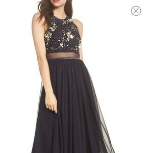 Sequin Hearts Sleeveless Embellished A-Line Gown-NAVY-7