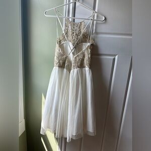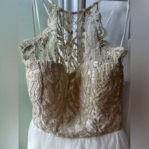 Yellow mark on the tulle as shown on picture and one small spot has loose thread but still attached.