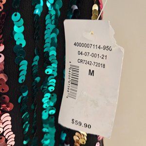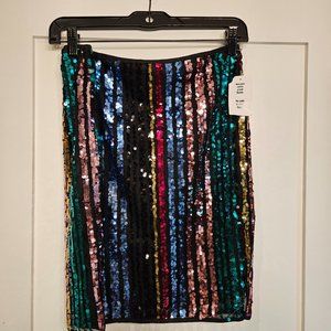 A fashion-forward mini skirt decorated with sequins in a pretty, striped pattern that's perfect for showing off your style at parties.