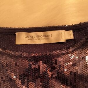Shine in this stunning navy blue sequin top, perfect for any occasion.