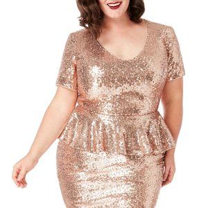 Steal the limelight this holiday season in sequin, v-neck midi dress with peplum frill.
