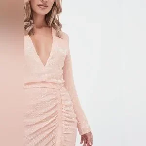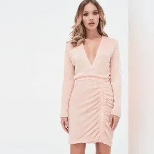 Shine in the sunlight in this shade of sequin, this elegantly romantic shade is perfect for those am-to-pm occasions. With a daring V-neck cut and slouchy long sleeves, be the girl who's ready to party.