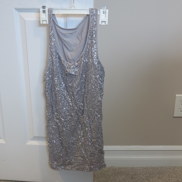 Joe Fresh tank top. Gray sequins, only in front, back is solid gray. Long length, about 28 inches.