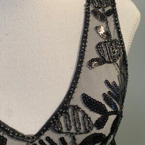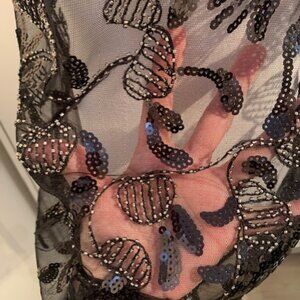 In mesh decorated with small beads and sequins. Transparent. Very beautiful workmanship. Polyester. Like new.