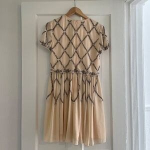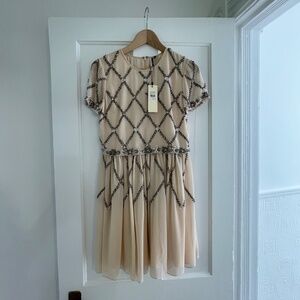 Purchased from top shop this is a beautiful contrasting sequin detail cocktail dress, fully lined with a zipper closure. This is a UK six, which is a US size 2. Perfect dress for a cocktail party, summer wedding, or prom.