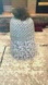 One of a kind crochet hat. Silver grey with sparkly sequins. Faux fur olive green pompom
