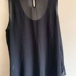 Lots of sparkle and dressy options for this nice sleeveless blouse. Keyhole back, sequined front, layered sheer over solid black (not see through). Nice versatile piece.