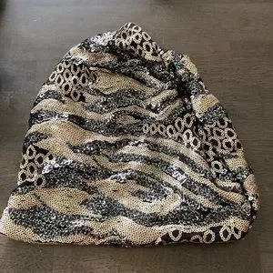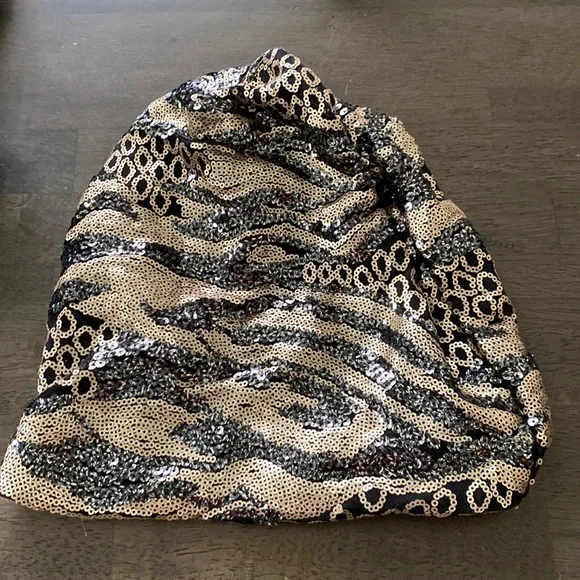 Silver and gold sequined hat, designed to be worn slouchy, kind of boho style