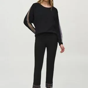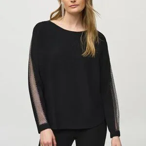 Take pleasure in the feminine details of this sweater knit pullover, embellished with lace and sequins at the sleeves. A flattering boat neck and comfy dolman sleeves give this top extra style points.